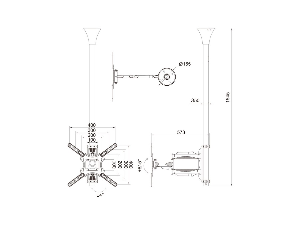 | Pillar length: | Min: 580mm to Max: 1550 mm from ceiling to VESA plate center Extension pipes: 1.5m (800mm*2pcs) included |