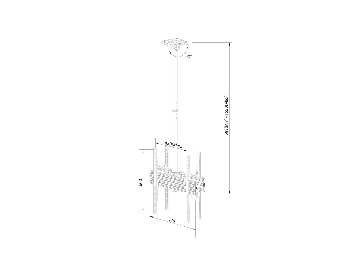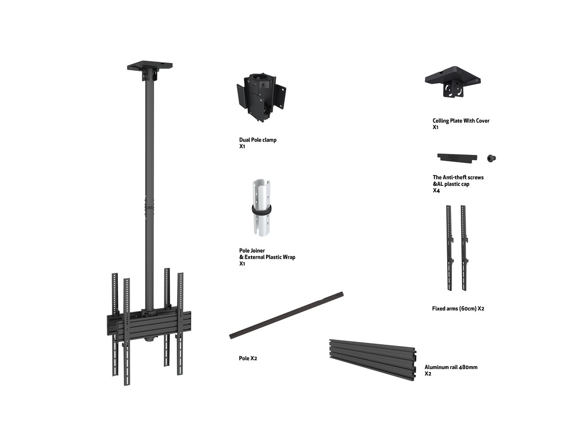 | Pillar length: | Min: 580mm to Max: 1550 mm from ceiling to VESA plate center Extension pipes: 1.5m (800mm*2pcs) included |