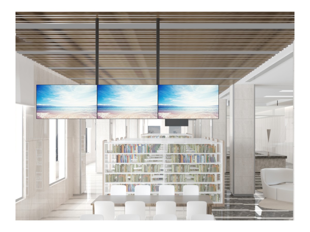 Product code:M Ceiling Mount Pro MBC3X1U - Ceiling mount for LCD display, steel, 3m length, TÜV, 3 screens, single side, tilt arms, VESA Max 600x400 - screen size: 40"-65" - black