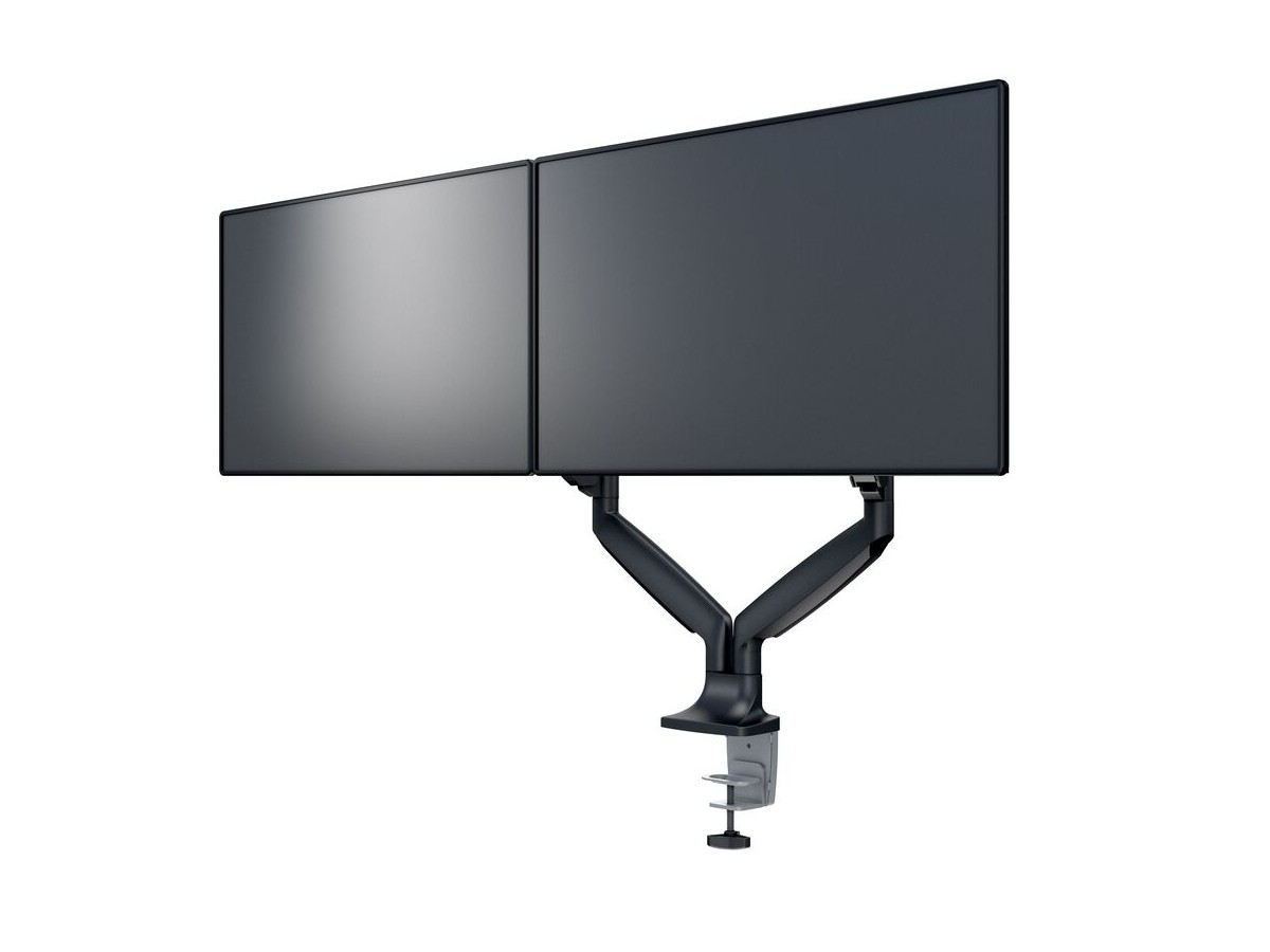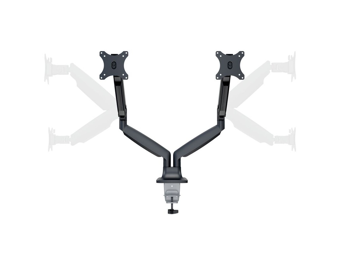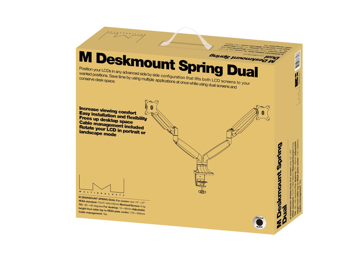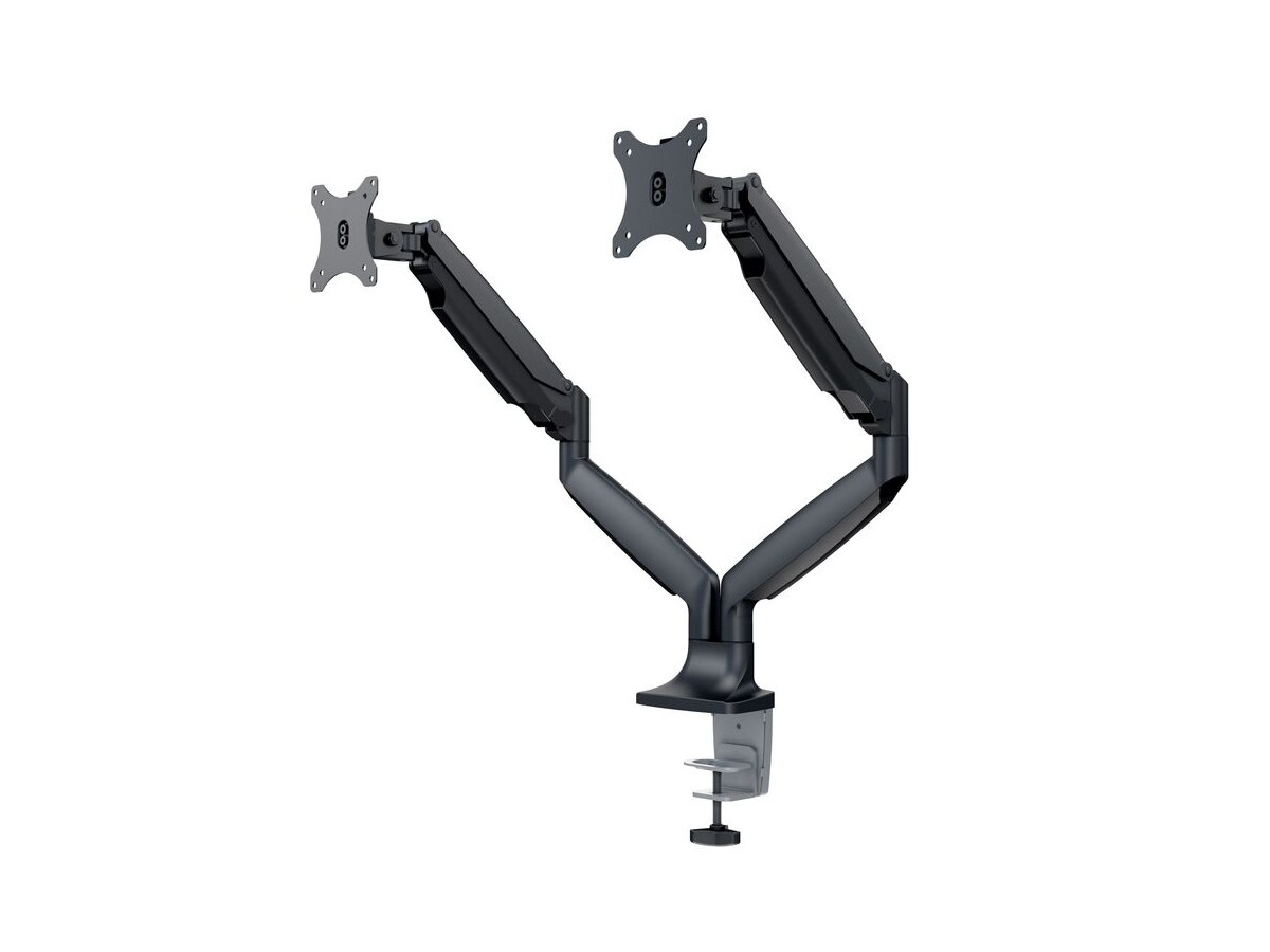 Product code:M Deskmount Gas Spring Dual Black - Mounting kit ( dual-screen mounting arm ) for LCD display - black - screen size: 15" - 27" - table mount