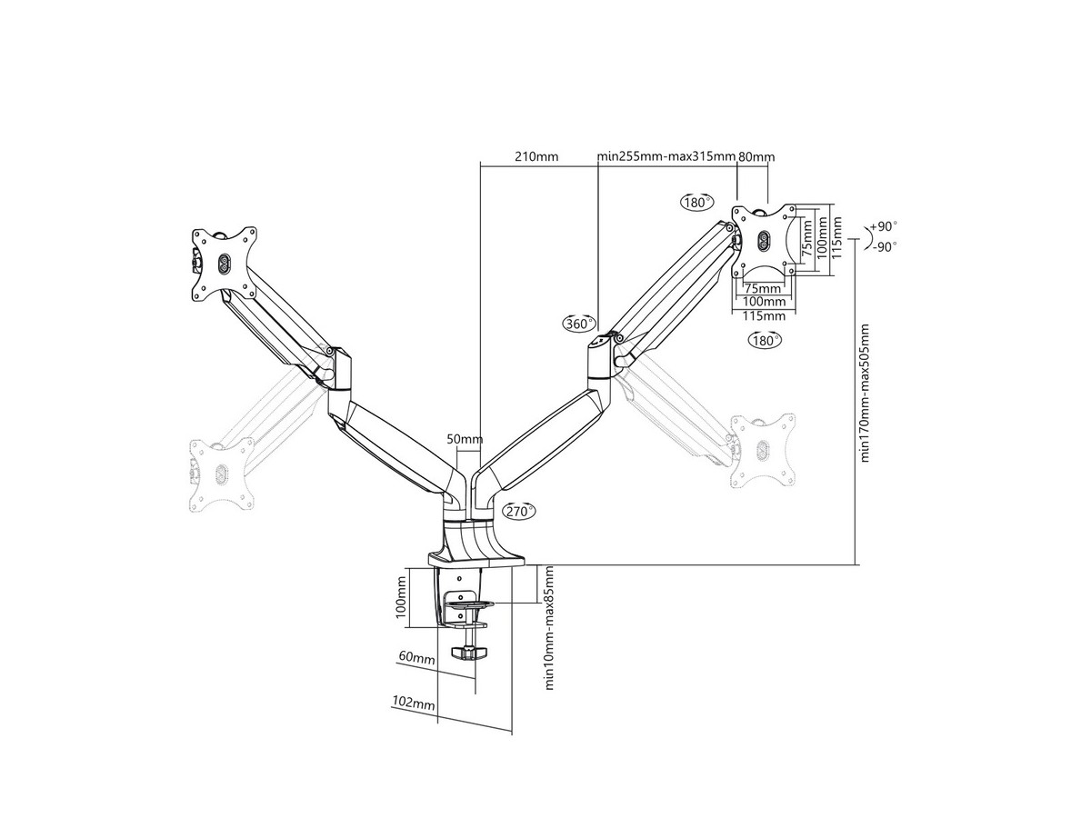 | Adjustable height from table top to VESA plate center: | 170 - 505mm |