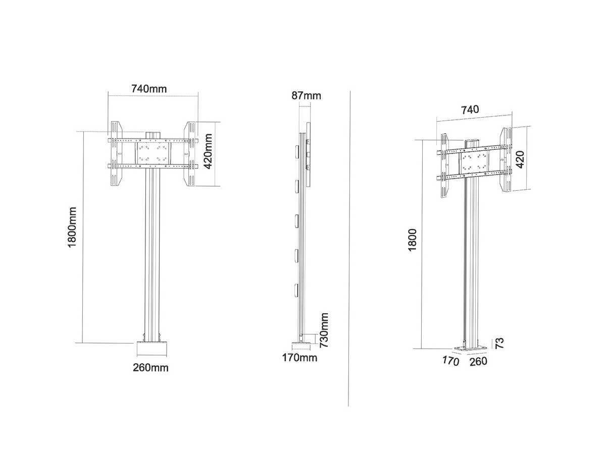 | Screen position: | Landscape (portrait possible but with limitations of bracket size/width) |