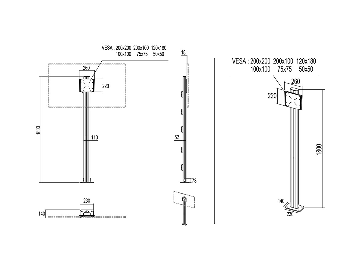 | VESA standard: | 75x75 to 700x400 mm |