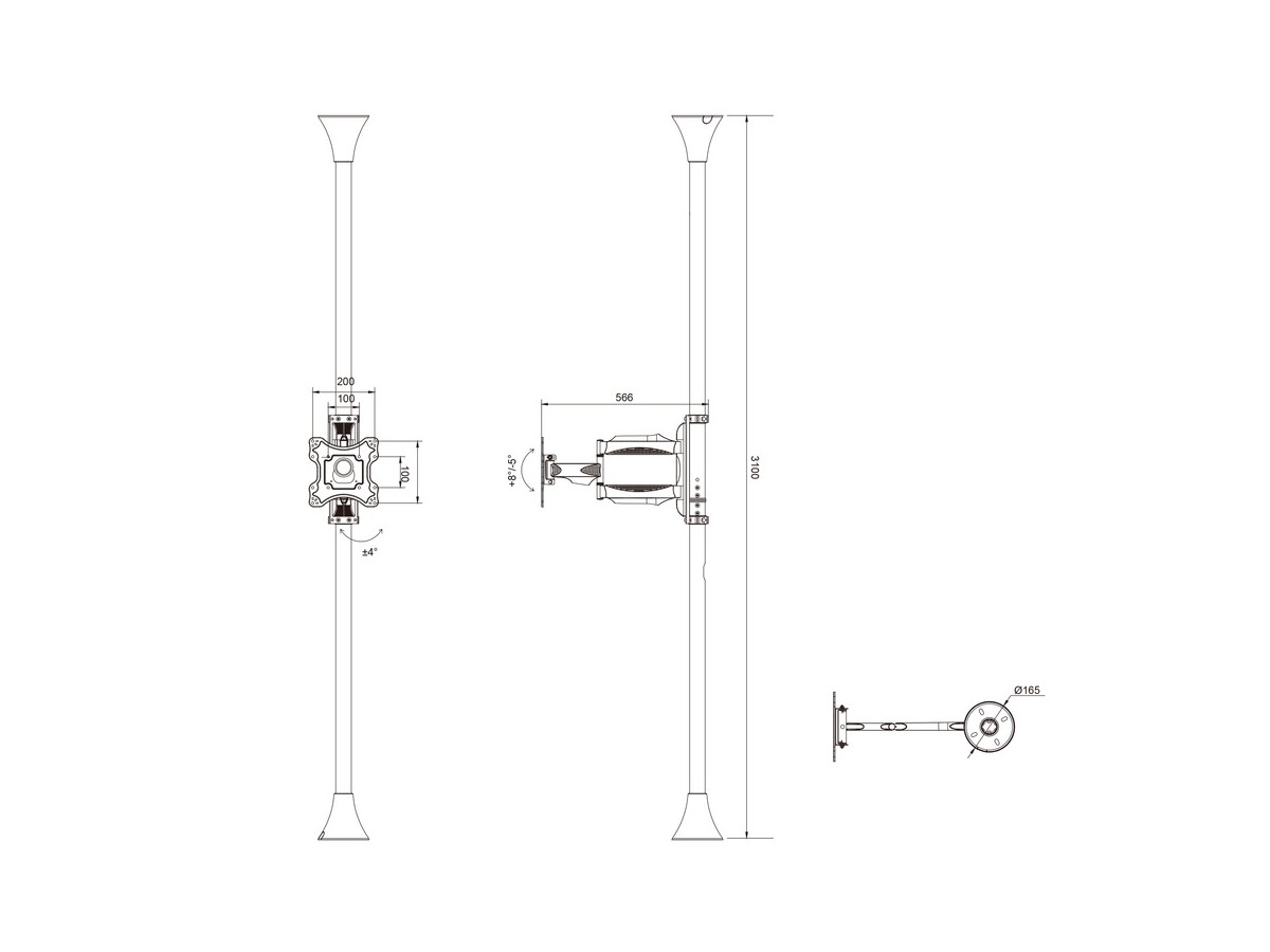 | Pillar length: | Min: 580mm to Max: 1550 mm from ceiling to VESA plate center Extension pipes: 3m (1500mm*2pcs) included |