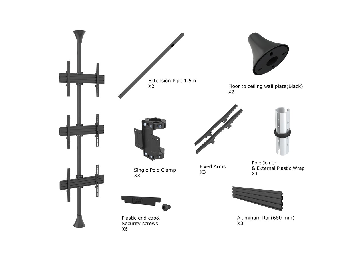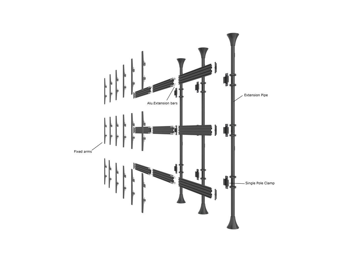 Product code:M Floor to Ceiling Mount Pro MBFC3U - Ceiling mount for LCD display, steel, 3m length, 3 screens, single side, fixed arms, VESA Max 600x400 - screen size: 40"-65" - black