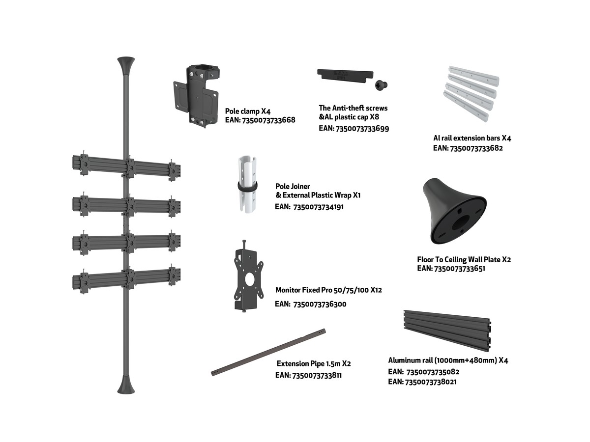 Multibrackets 7350105212031 M Floor to Ceiling Mount Pro MBFC3X4U-F100