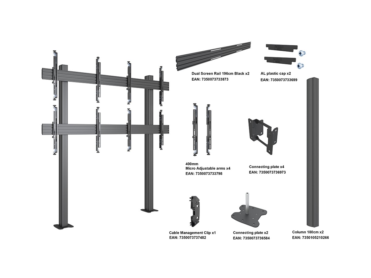 Product code:M Floormount Column Pro 2x2 180 Micro Adjustable - Floor column mount for dual displays, steel, 1.8m height, 2 screens, double side, micro adjustable arms, VESA Max 600x400 - screen size: 32"-65" - black