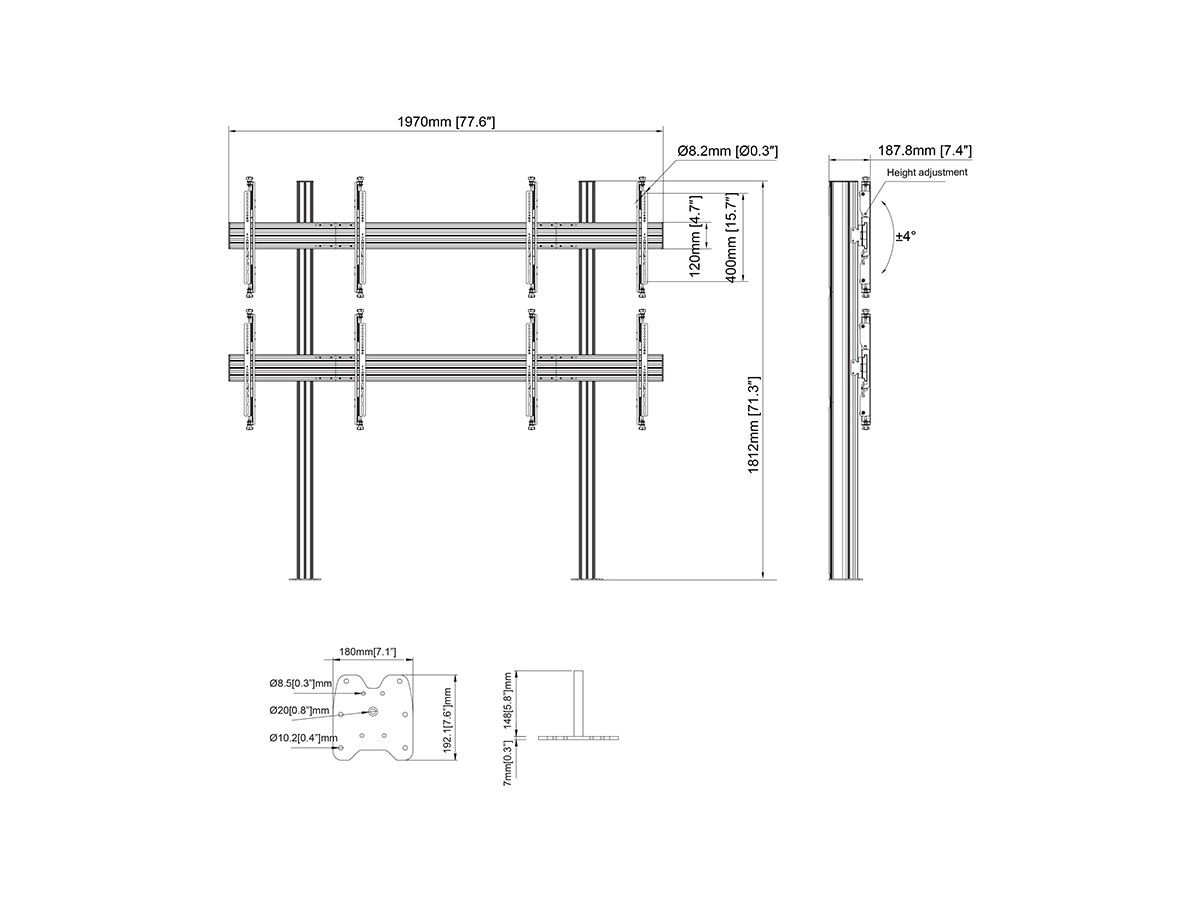 Multibrackets 7350105213403 M Floormount Column Pro 2x2 MBFM2x2U 180 Micro Adjustable