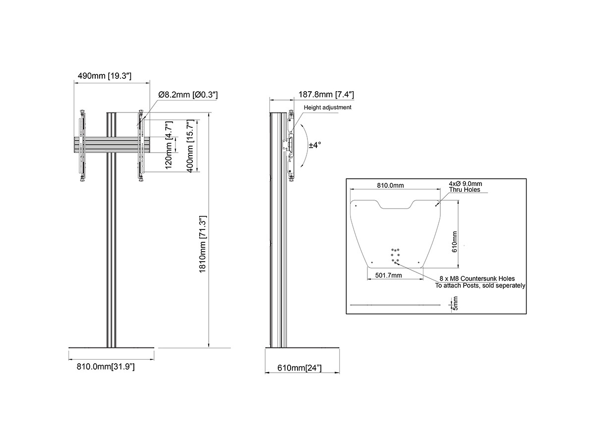- Includes VESA adapters for compatibility up to VESA 400x400