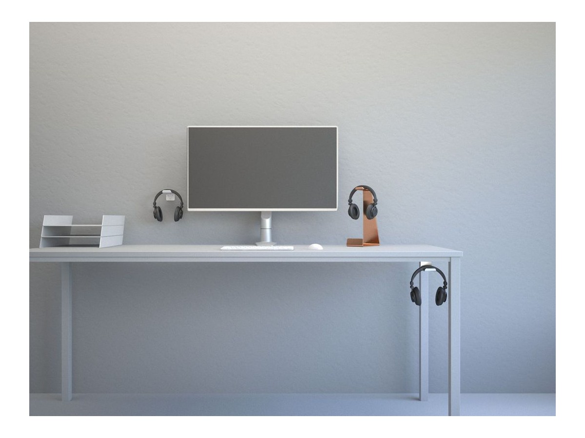 Multibrackets Headset Holder Desk provides a simple storage solution for your headset or headphones under your desk. Protect your headset from damaging falls and extra wear and tear while allowing you to display your gear. This Aluminum Headphone Desk Hanger, fits many models of Audio-Technica, Bose (example QC3, QC25, QC2, QC15) AE2, AKG, Beats (Studio, Solo, Wireless, Pro), Sennheiser, Parrot Zik, Panasonic, Sony (MDR, DJ) and many other Headphones.