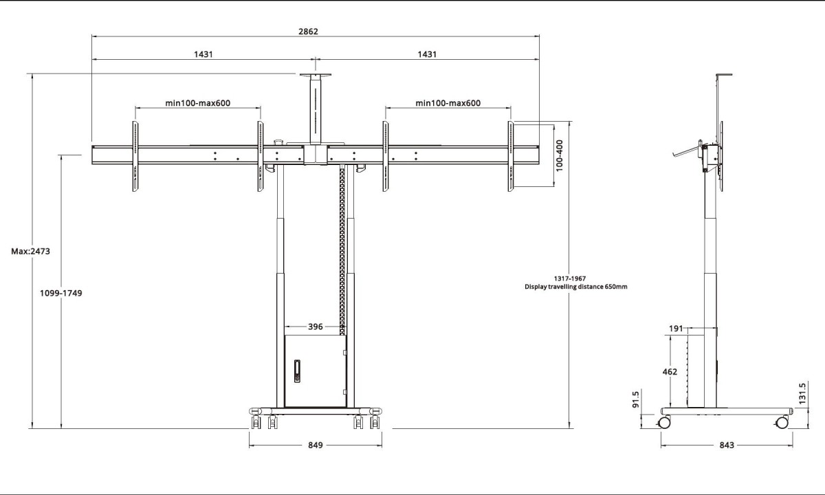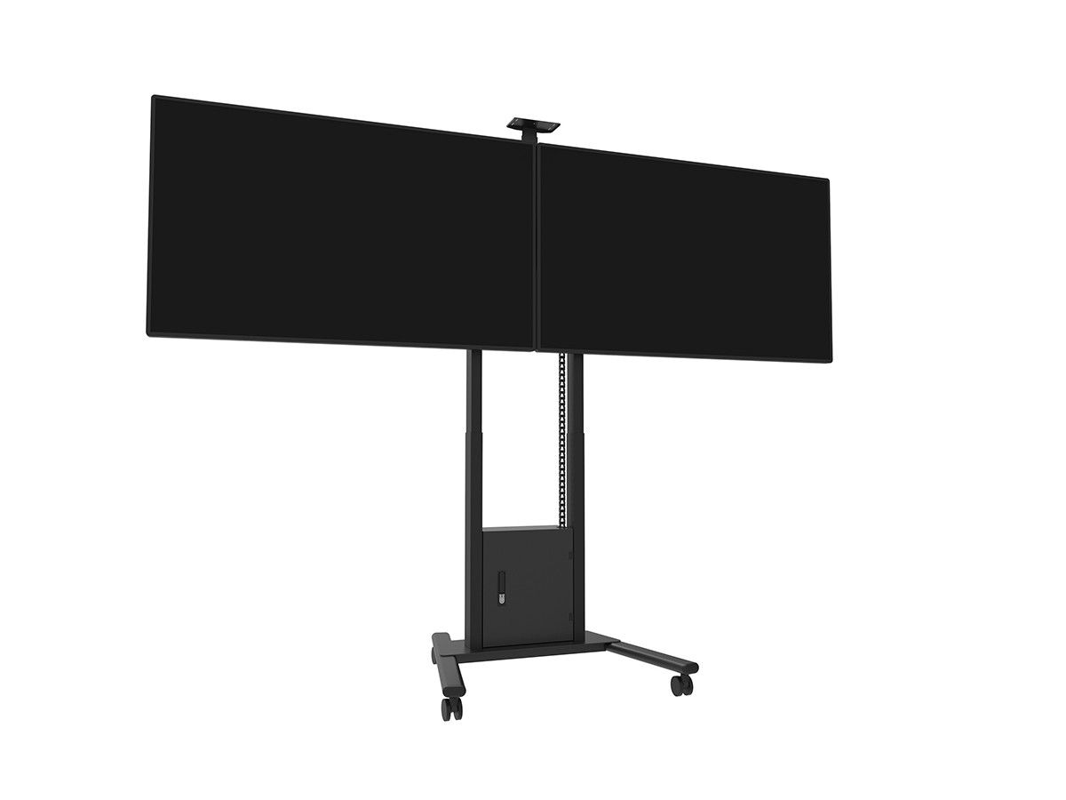Product code:M Motorized Floorstand Dual Screen Incl cabinet & camerashelf 120kg Black - Stand kit (floor stand) for Displays - screen size: 40" - 75" - max load: 120 kg - VESA: 200x200 - 600x400 mm - black