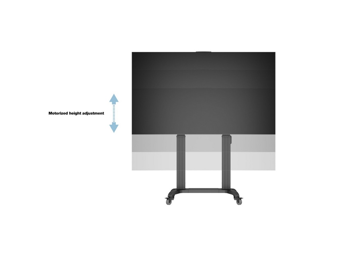 Product code:M Motorized Public Floorstand Dual Pillar 180 HD – Motorized floorstand for displays or touchscreens - aluminum - screen size: 65"-110" - max load: 135 kg - VESA: 200x200-1000x600 – 4x lockable castors - black