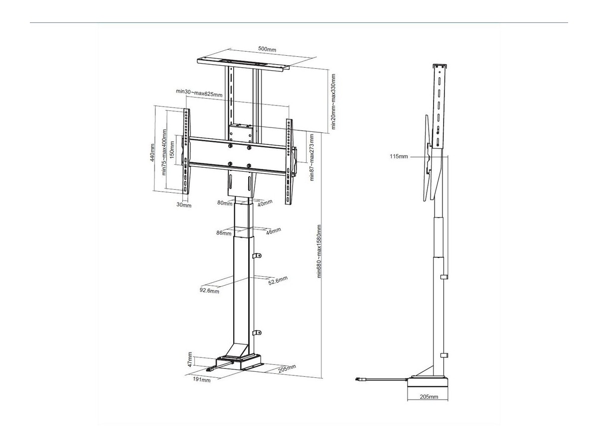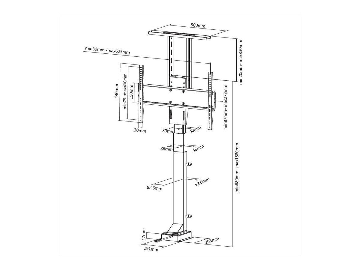 Product code:M Motorized TV Lift Large - Stand kit (floor stand) for LCD TV - 37-65" - VESA 200x200 - 600x400 - max 50kg - black