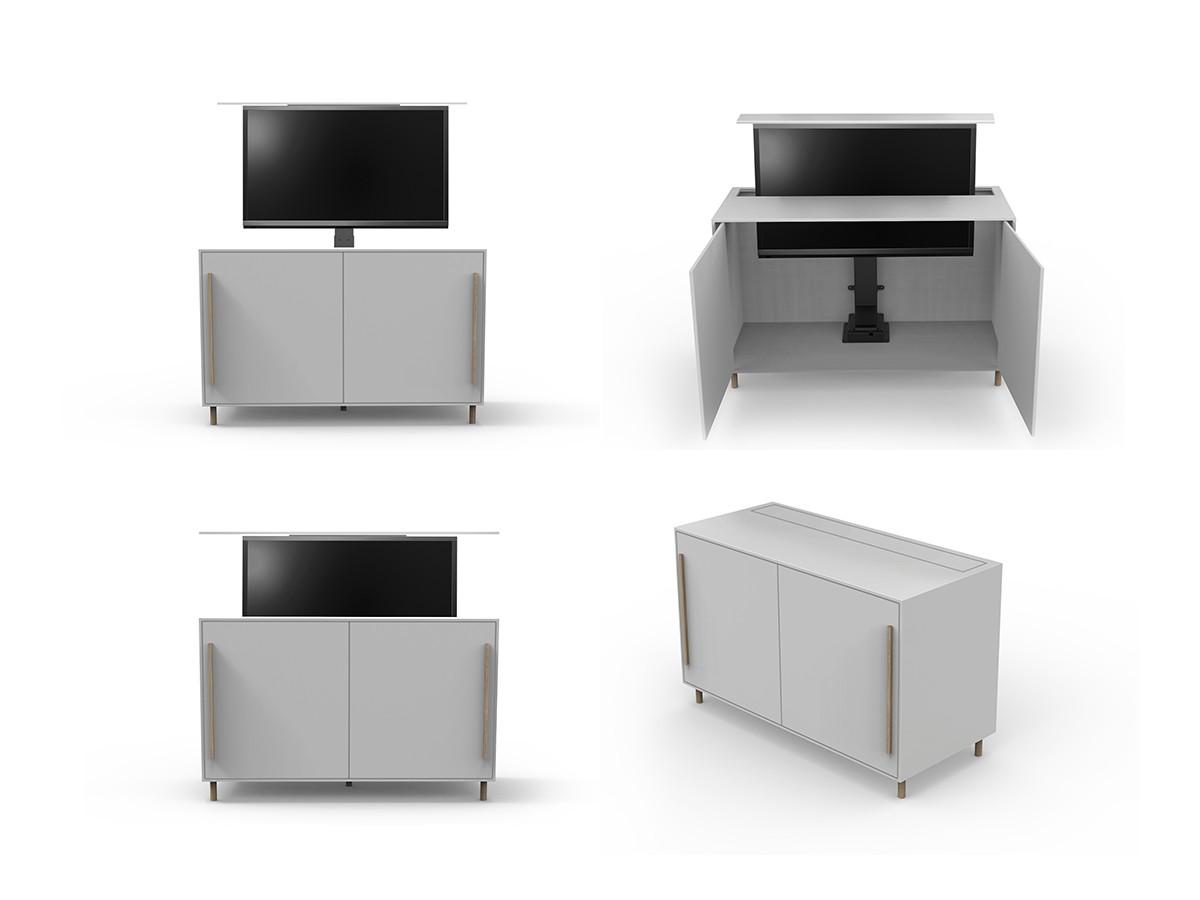 Your television or display is one of the focal points in most meetingrooms & livingrooms. With a TV lifts you give both your display and the whole room the attention it deserves. Improve your interior with a TV lift. The M Motorized TV Lift Large combines multiple telescoping lift columns into one seamless mechanism, providing great speed and extended travel. It raises screens up to 65″ in 20 seconds.
