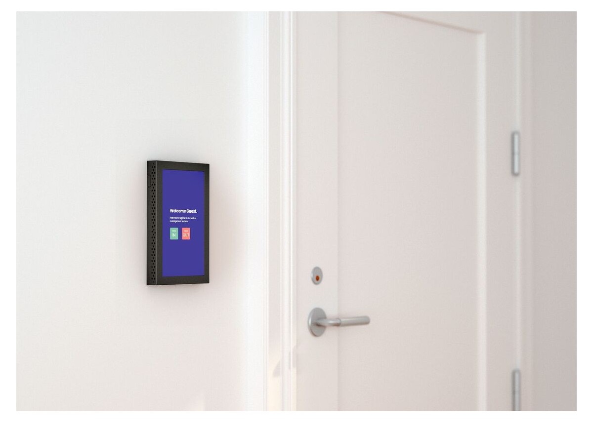 - Encloses a small screen in a steel cage to protect from theft