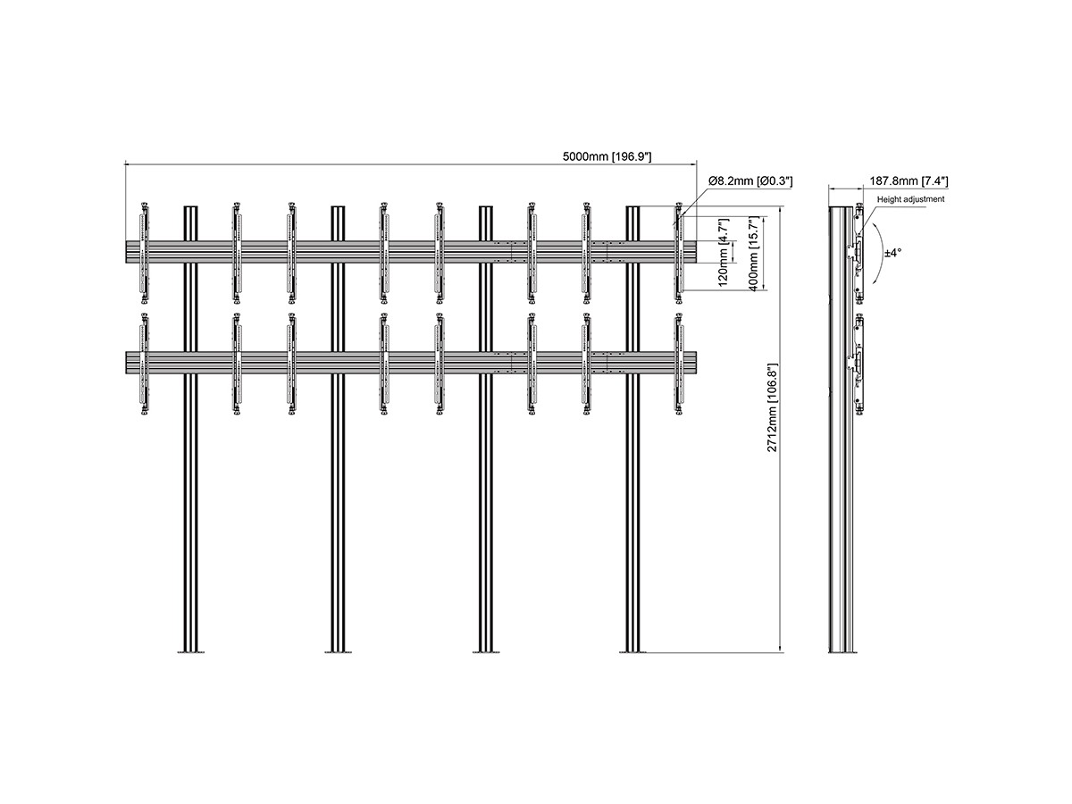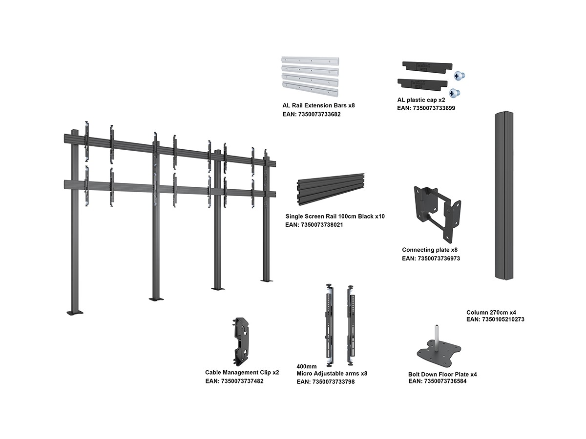 Product code:M Floormount Column Pro 4x2 270 Micro Adjustable - Floor column mount for dual displays, steel, 2.7m height, 4 screens, double side, micro adjustable arms, VESA Max 600x400 - screen size: 32"-65" - black