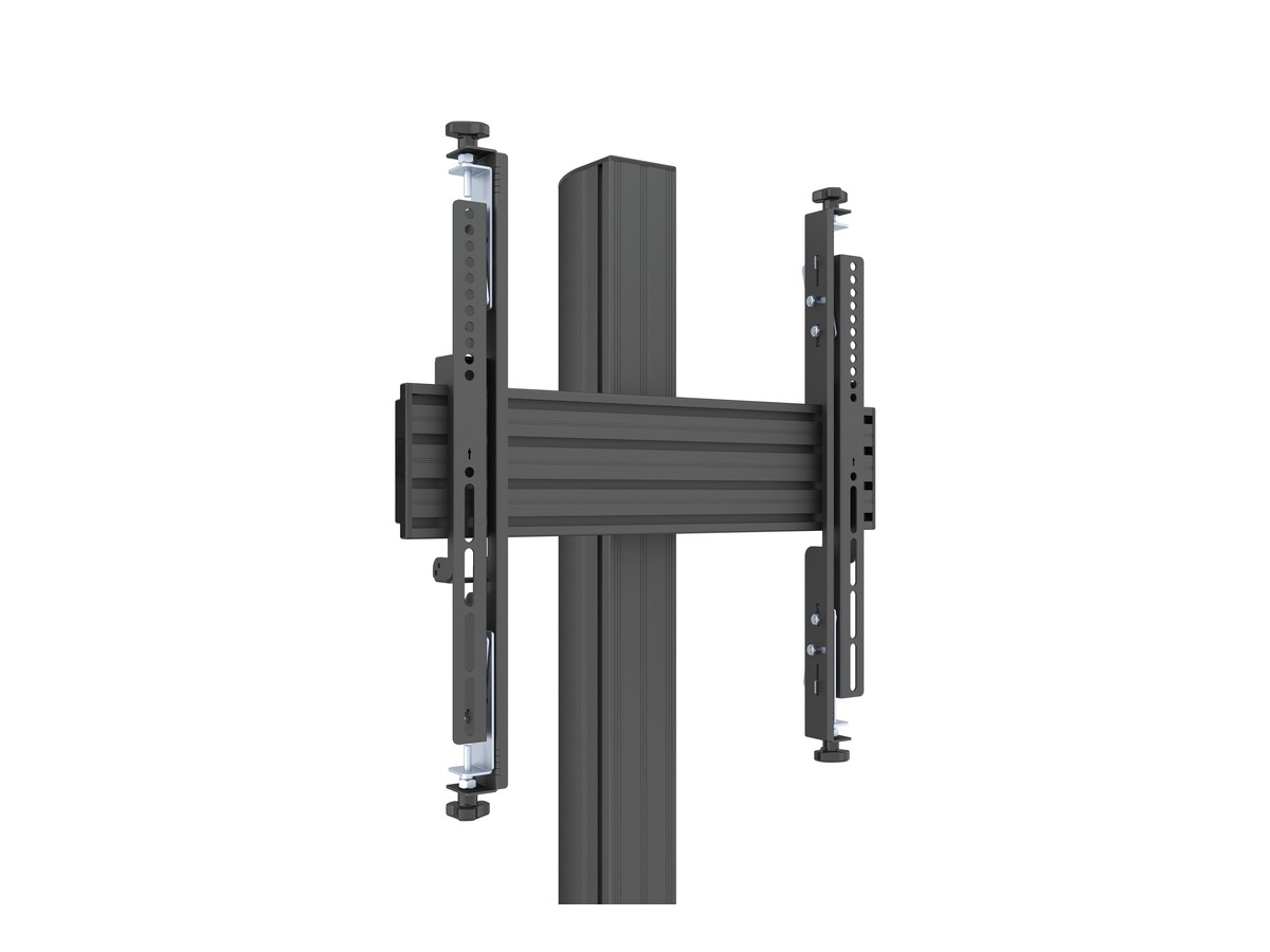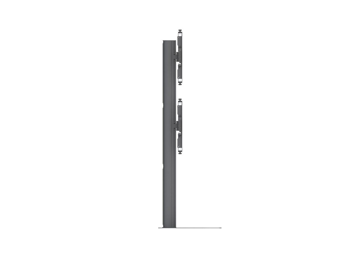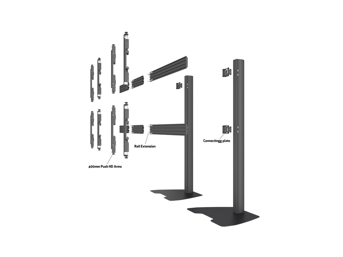 Based on 180cm high pillar made out of durable aluminum, the possibilities for height adjustments are very good and it is possible to provide perfect viewing angle for both a sitting and a standing audience. This movable video wall solution creates a solution that can be used for presentations, trade shows, store or office entrances.