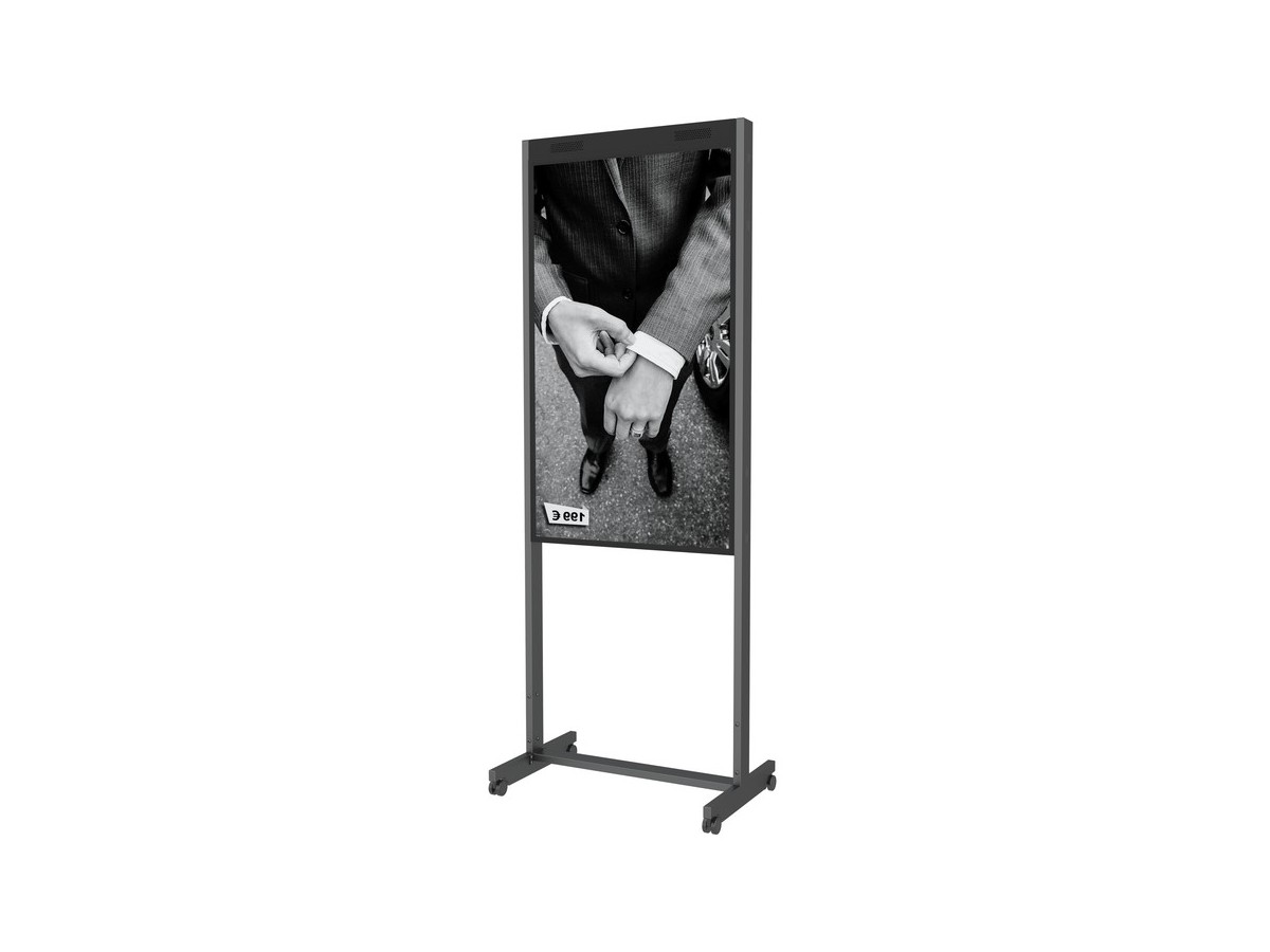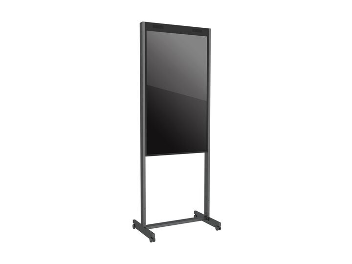 The product adds a wheelbase to the standard floormount base included and can then creates a non-movable base for the M Public Display Stand.