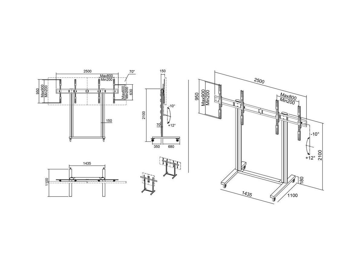 Product code:Stand for LCD / LED panel - aluminum - black - Dual screen size: 50" - 77" - mounting interface: up to 800 x 600 mm - wheel-standing