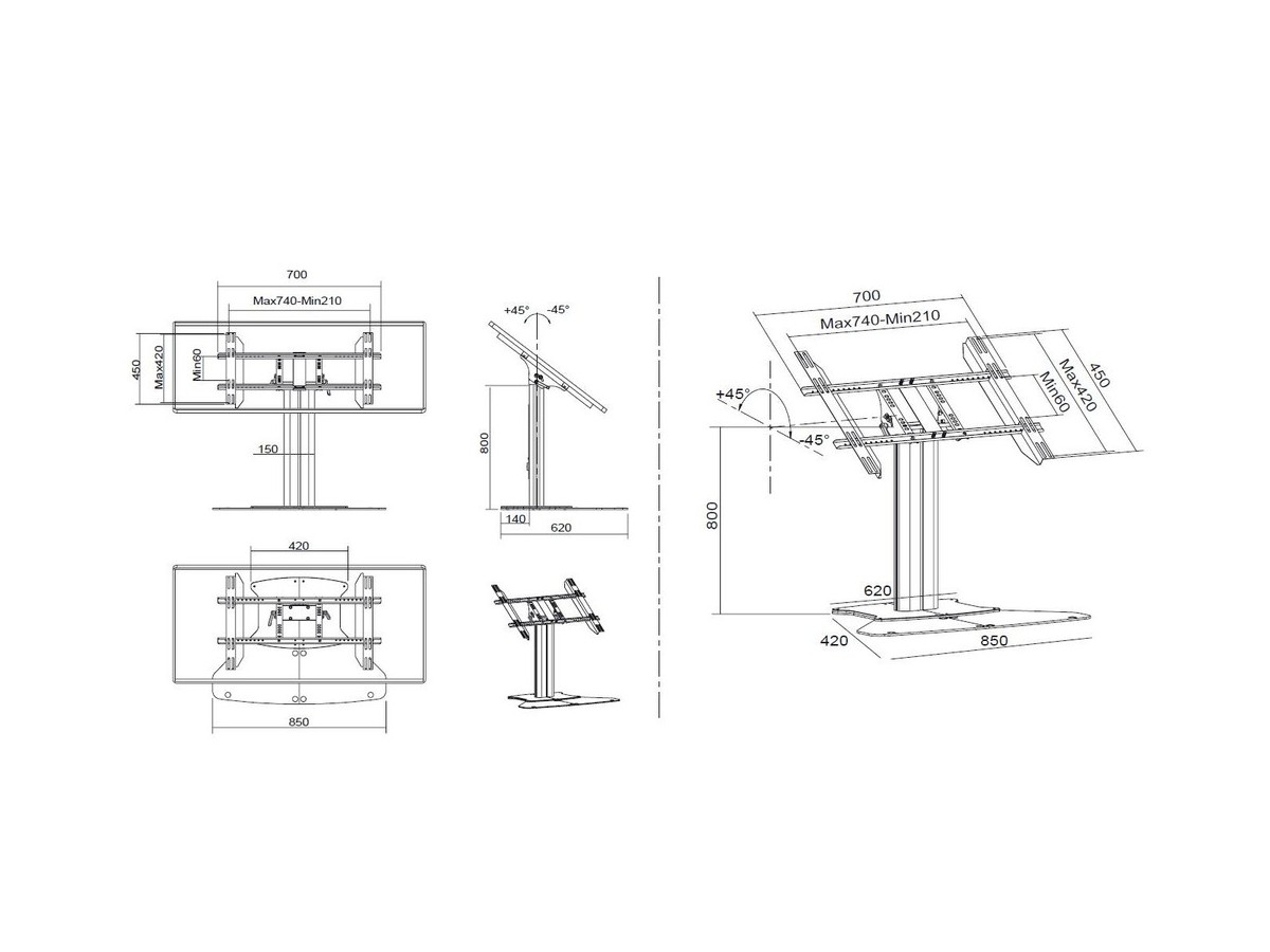 | Height when in table position with Floorstand base: | 800 mm |