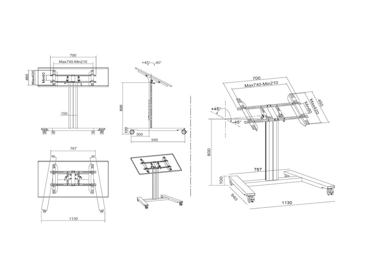 Product code:M Public Display Stand 80 HD Wheelbase Single Black - Stand for LCD display - aluminum - black - screen size: 32" - 55" - mounting interface: 700 x 400 mm