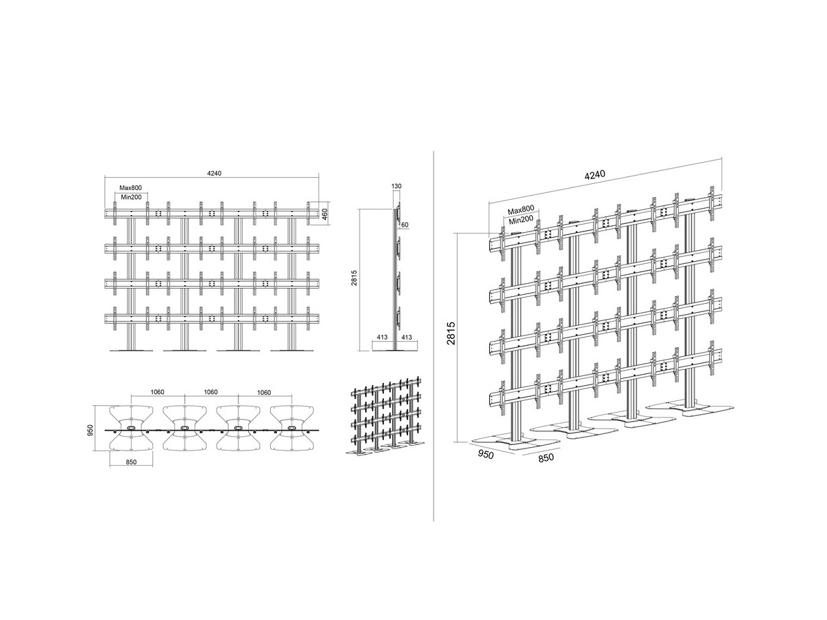 Product code:Multibrackets M Public Video Wall Stand 16-Screens - Stand for 16 LCD displays - aluminum - black - screen size: 40" - 55" - mounting interface: up to 800 x 400 mm - floor-standing