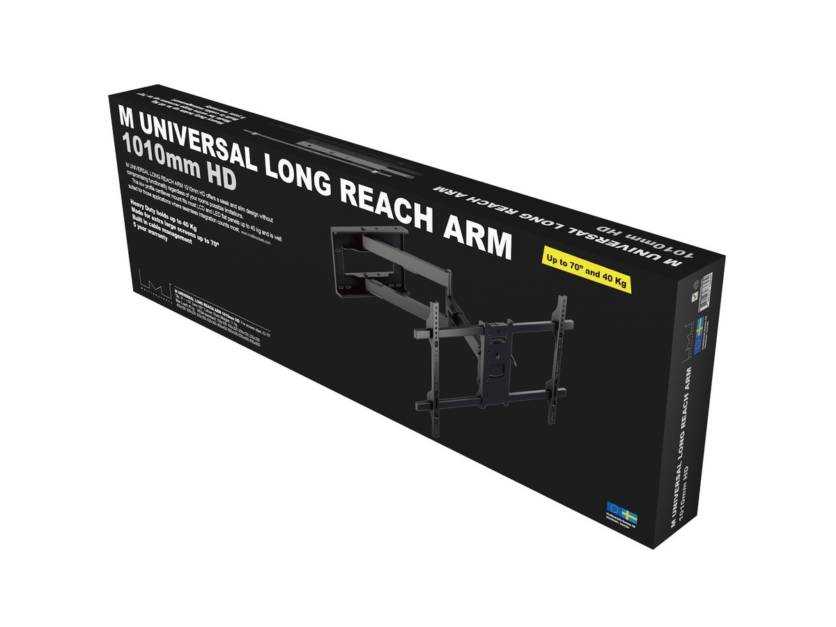 Product code:M Universal Long Reach Arm 1010mm HD, Single - Wall mount for LCD / LED panel - screen size: 42" - 75" - VESA: 100x100 - 800x400mm - max load: 40kg - black