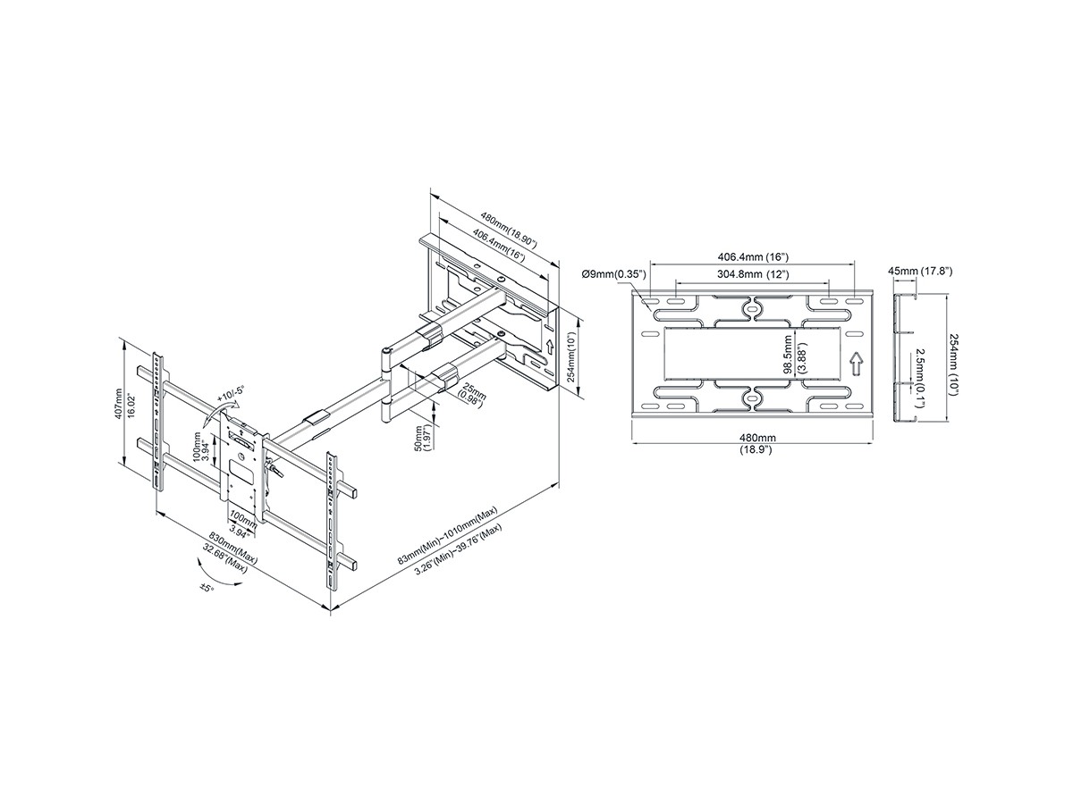 | Swivel: | +60° ~ -80° (depending on screen size) |