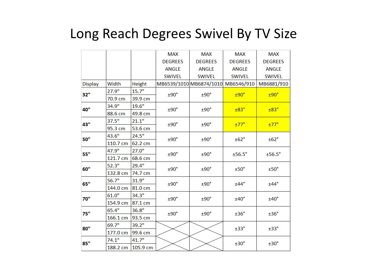 - Maximum swivel left and right, even for larger screens