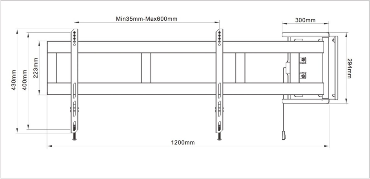 | Measurements: (HxDxW): | 430x106x54-1184mm |
