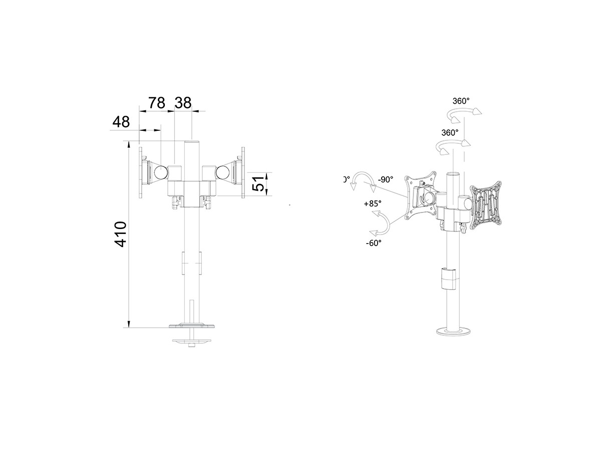Product code:M VESA Deskmount Dual B2B with Lockable Tablet Mount – Back to Back monitor mount for iPad & tablets and monitor – POS - metal construction - tilt: 80 - swivel: 360 – A tablet size: 7" to 13", and a monitor that supports VESA 75x75, 100x100