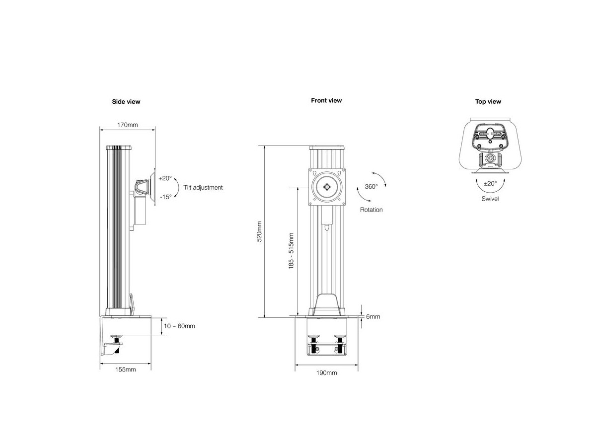 | Installation: | Desk clamp, adjustable 10 - 60 mm |
