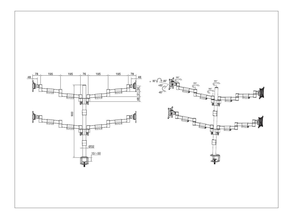 | Adjustable height from table top to VESA plate center: | 0 - 900mm |