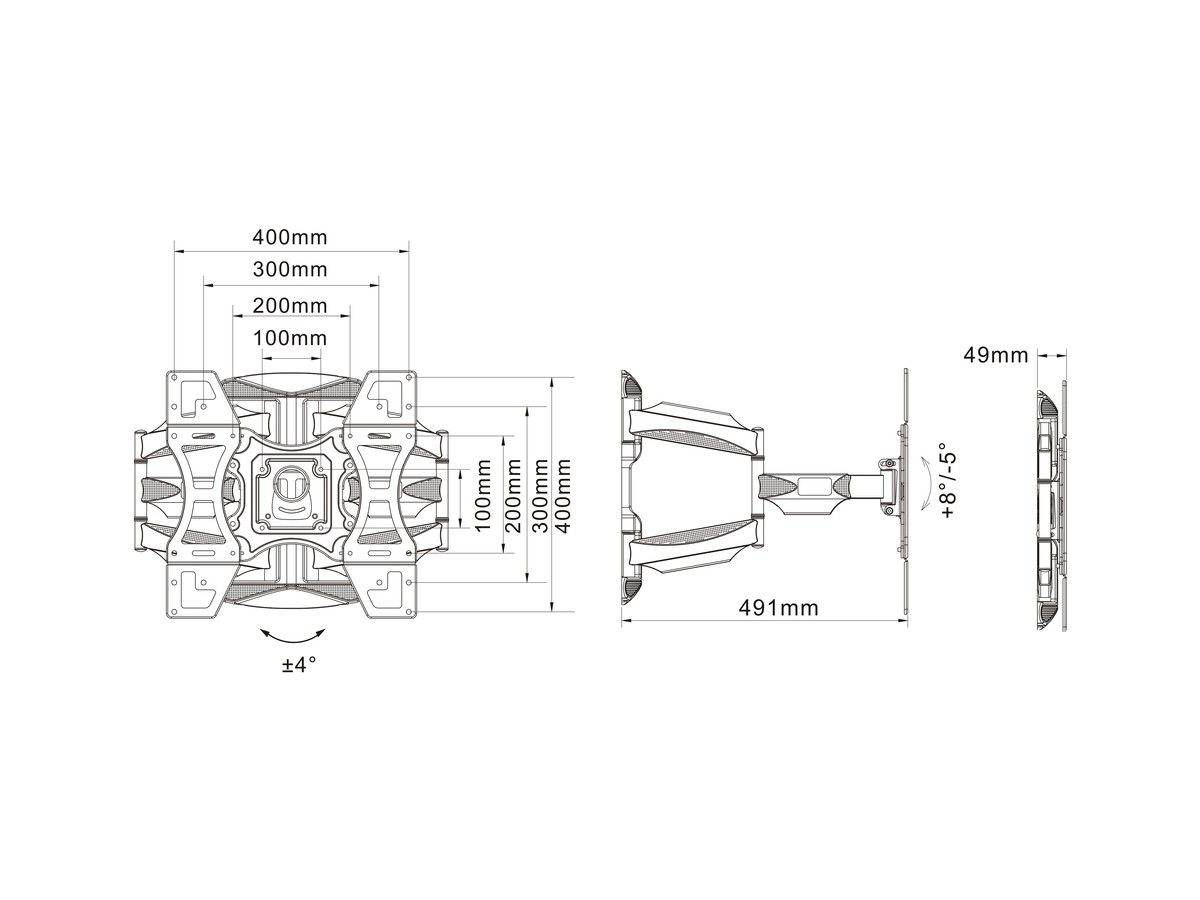 | Turn: | Up to -45° ~ +45°, screen size dependant |
