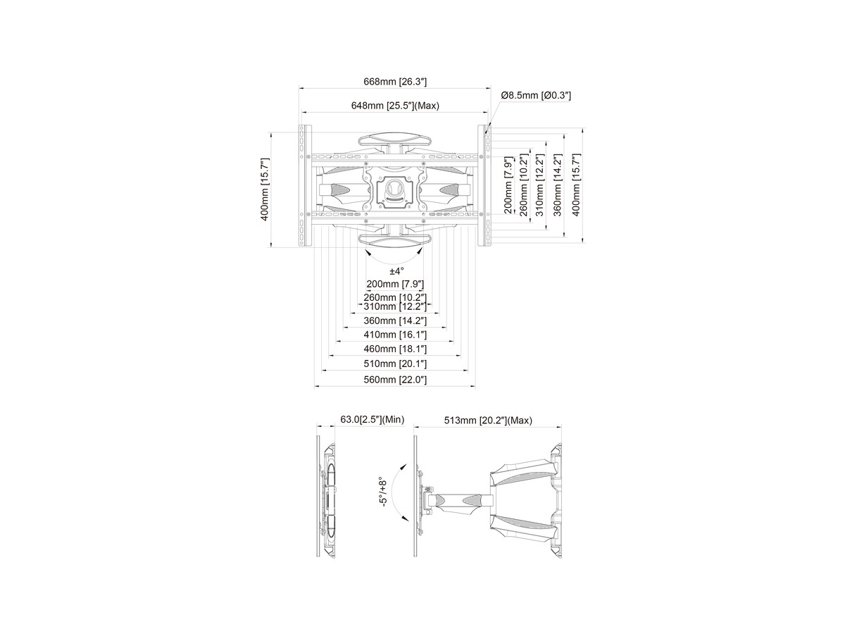 | Turn: | Up to -45° ~ +45°, screen size dependant |