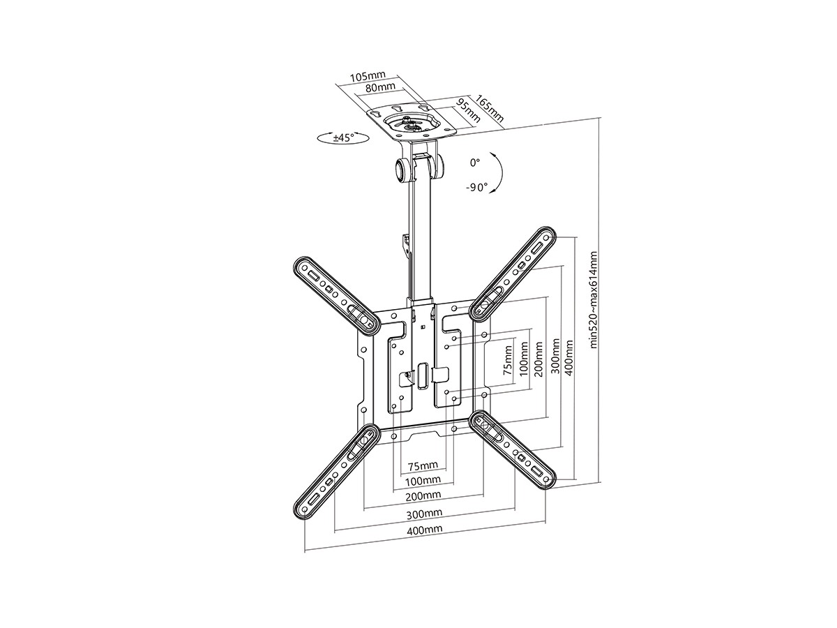 | VESA standard: | 75x75, 100x100, 100x200, 200x100, 200x200, 200x300, 300x200, 200x400, 400x200, 300x300, 300x400, 400x300, 400x400 |