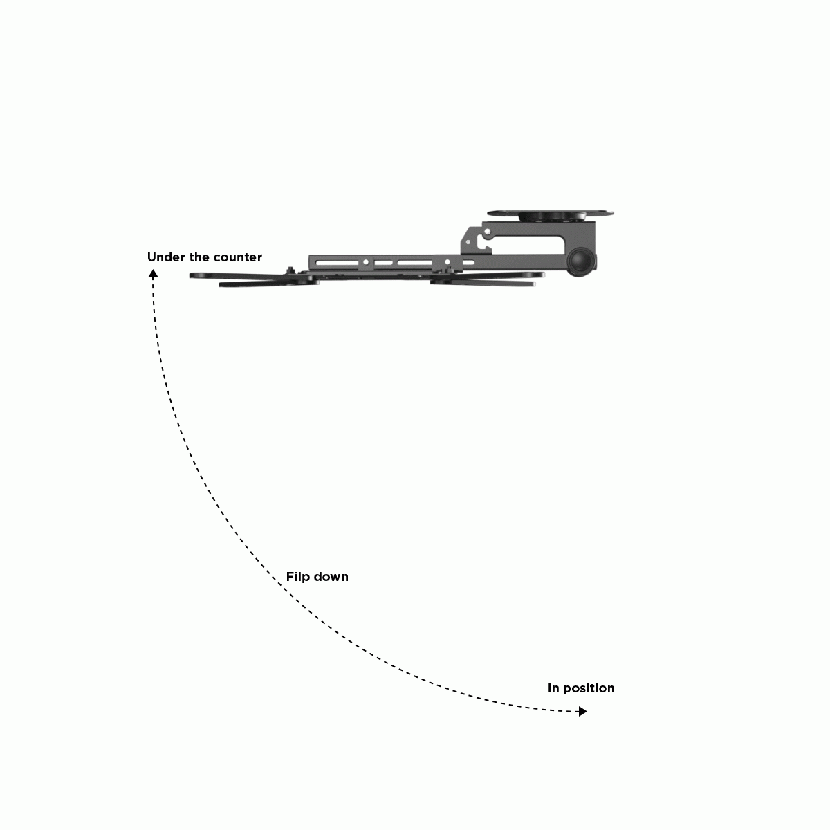 - The ideal space saver for ceiling, under-the-cabinet, counter TV-installations