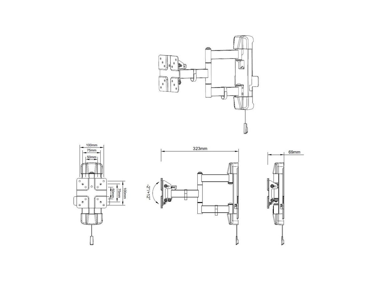 Product code:M VESA Full Motion Outdoor 50/75/100 - Wall mount for LCD display - screen size: 13"-42" - max load: 20kg - VESA: 50x50 75x75 100x100 mm - black - Dacrotized® ceramic