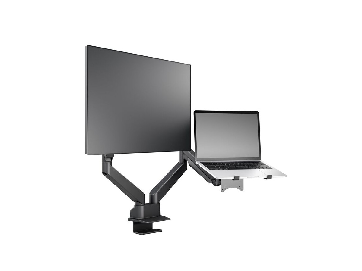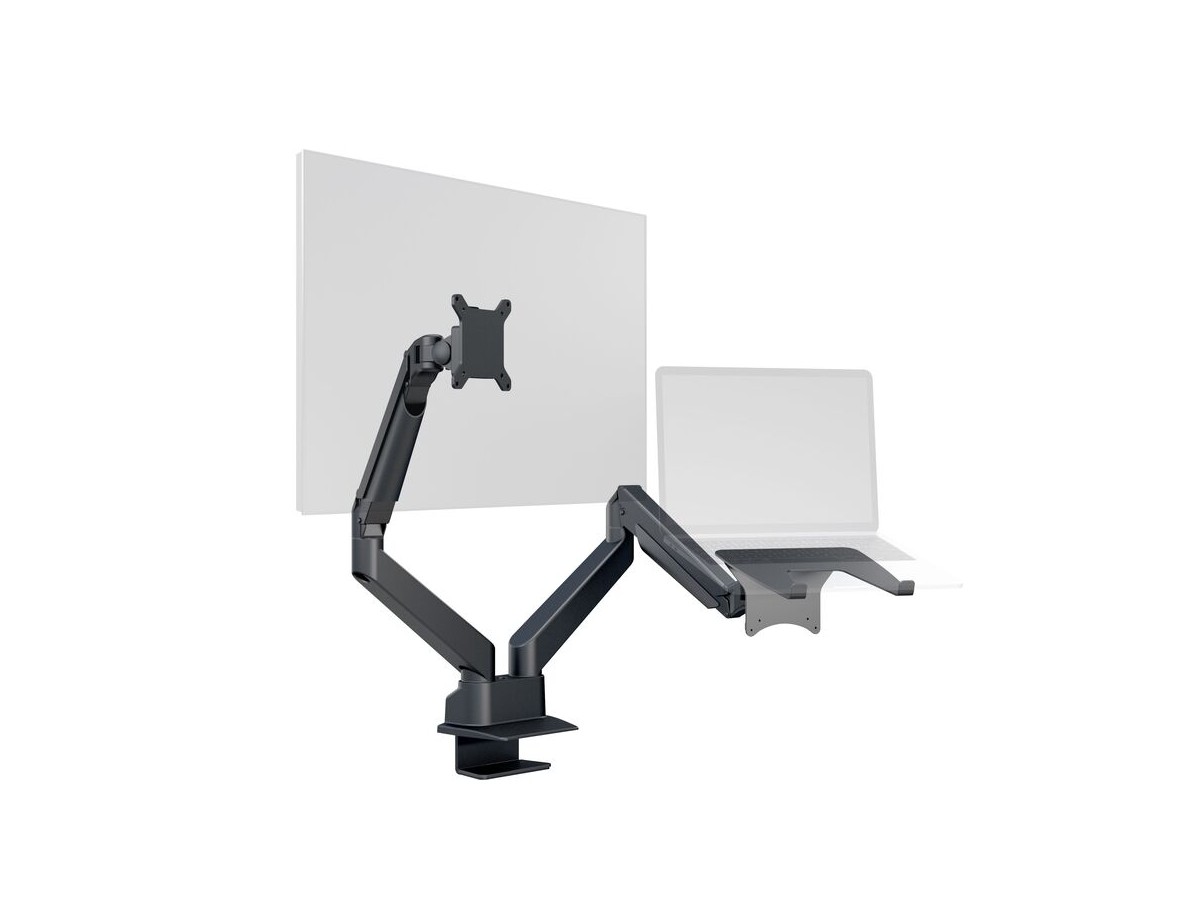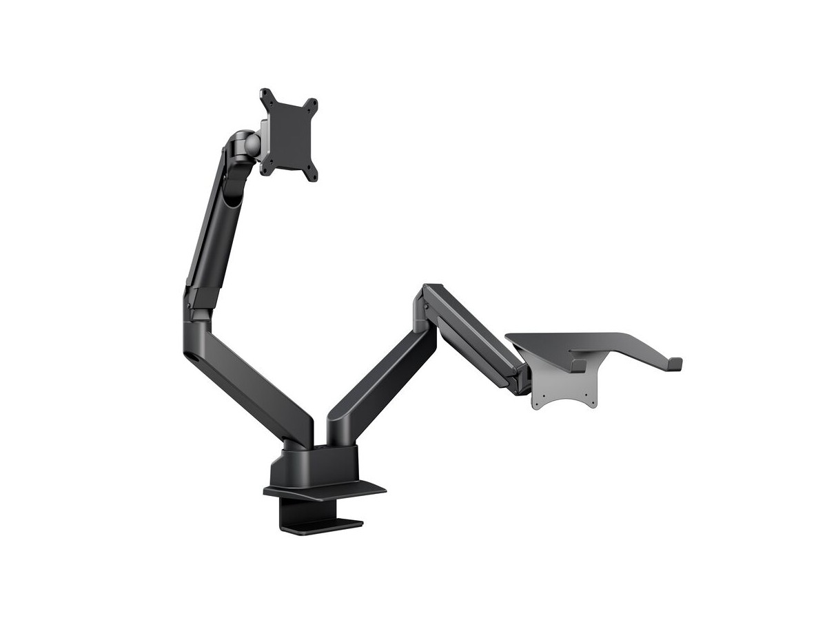 Product code:M VESA Gas Lift Arm Dual Arm w. Laptop Holder - Mounting kit ( 2 articulating arms ) for one LCD display and M Laptop Holder - VESA 75x75 and 100x100 - aluminum - black - screen size: 15" - 32"