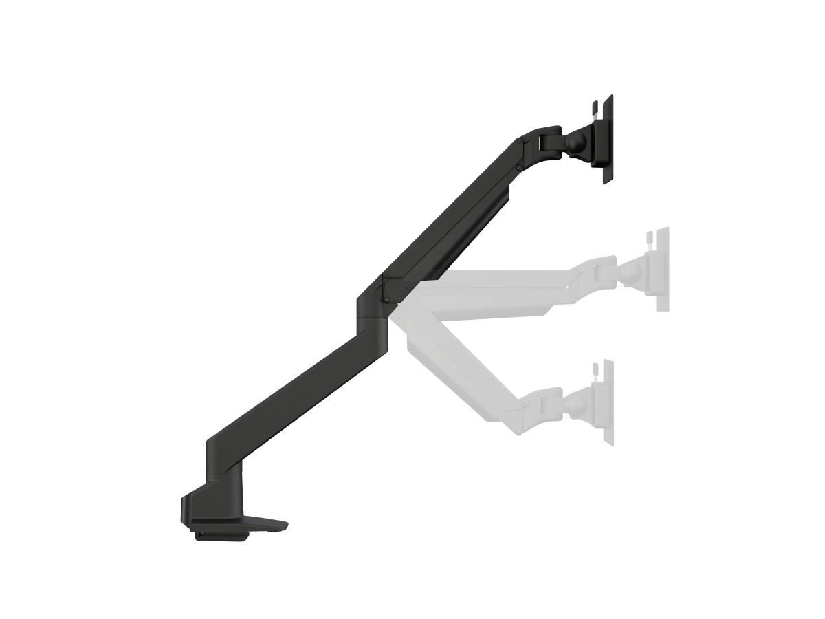 The M VESA Gas Lift Arm is made out of a durable aluminum construction and uses a gas driven suspension technique. This makes the screen "float" and it can then be moved with near zero effort. Sleek and streamlined, the M VESA Gas Lift Arm Single frees up space and allows positioning of your display for greater productivity. The unique counterbalance gas technology provides smooth adjustment in any direction. Easy move the screen from landscape to portrait position or move the screen close to the desk, high up, matching almost any wanted working position imaginable.