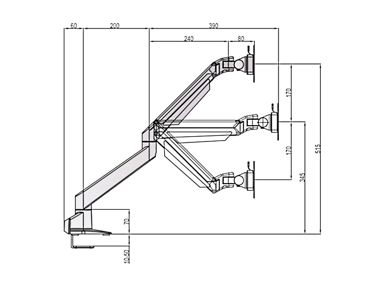 A triple jointed gas suspended monitor arm, designed by Multibrackets to optimize your productivity and help reducing strain on neck, back and eyes.