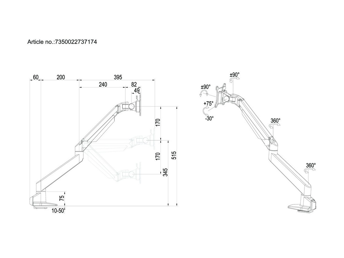 Product code:Multibrackets M VESA Gas Lift Arm Single - Mounting kit ( articulating arm, desk clamp mount ) for displays - aluminum - black - VESA: 75/100 - screen size: 15" - 32"