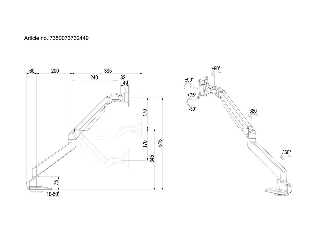 Product code:Multibrackets M VESA Gas Lift Arm Single HD - Mounting kit ( articulating arm, desk clamp mount ) for LCD / LED panel - aluminum - black - screen size: 15" - 32" - mounting interface: 100 x 100 mm, 75 x 75 mm