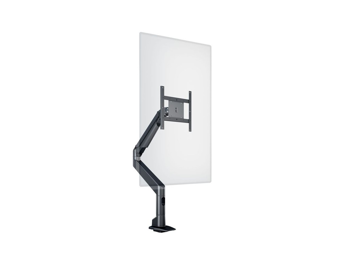 The M VESA Gas Lift XL HD Single Black is made out of a durable aluminum construction and uses a gas driven suspension technique. This makes the screen "float" and it can then be moved with near zero effort. Sleek and streamlined, the M VESA Gas Lift XL Single Black HD frees up space and allows positioning of your display for greater productivity. With a maxload of up to 18kg even very big monitors can be used. The height clearance is 615 mm above the desk. Rotation function is not used for widescreen or ultrawide screen monitors. The unique counterbalance gas technology provides smooth adjustment in any direction. Easy move the screen from landscape to portrait position or move the screen close to the desk, high up, matching almost any wanted working position imaginable.