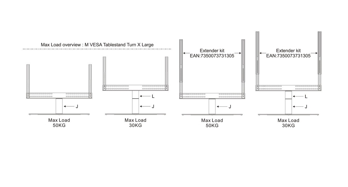| Max load: | Single Pole with Extenderkit 50 kg (7350073731305) Dual Pole 30 kg |