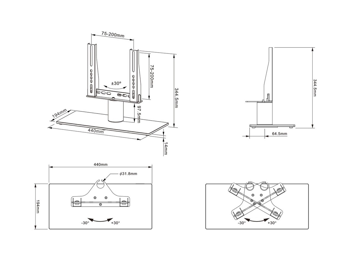 Perfectly placed on a table or media furniture, it has a sophisticated built in left and right turn feature inside its tubular pillar. The M VESA Tablestand turns your TV screen up to 30 degrees, left or right. This allows you to watch your TV in an optimal angle from your TV sofa, kitchen, favorite comfy chair or anywhere else the turned reaches its viewing angle. The M VESA Tablestand Turn optimizes your TV angle, it makes the most out of your living room setting and can create a smooth functionality for your home or office environment.