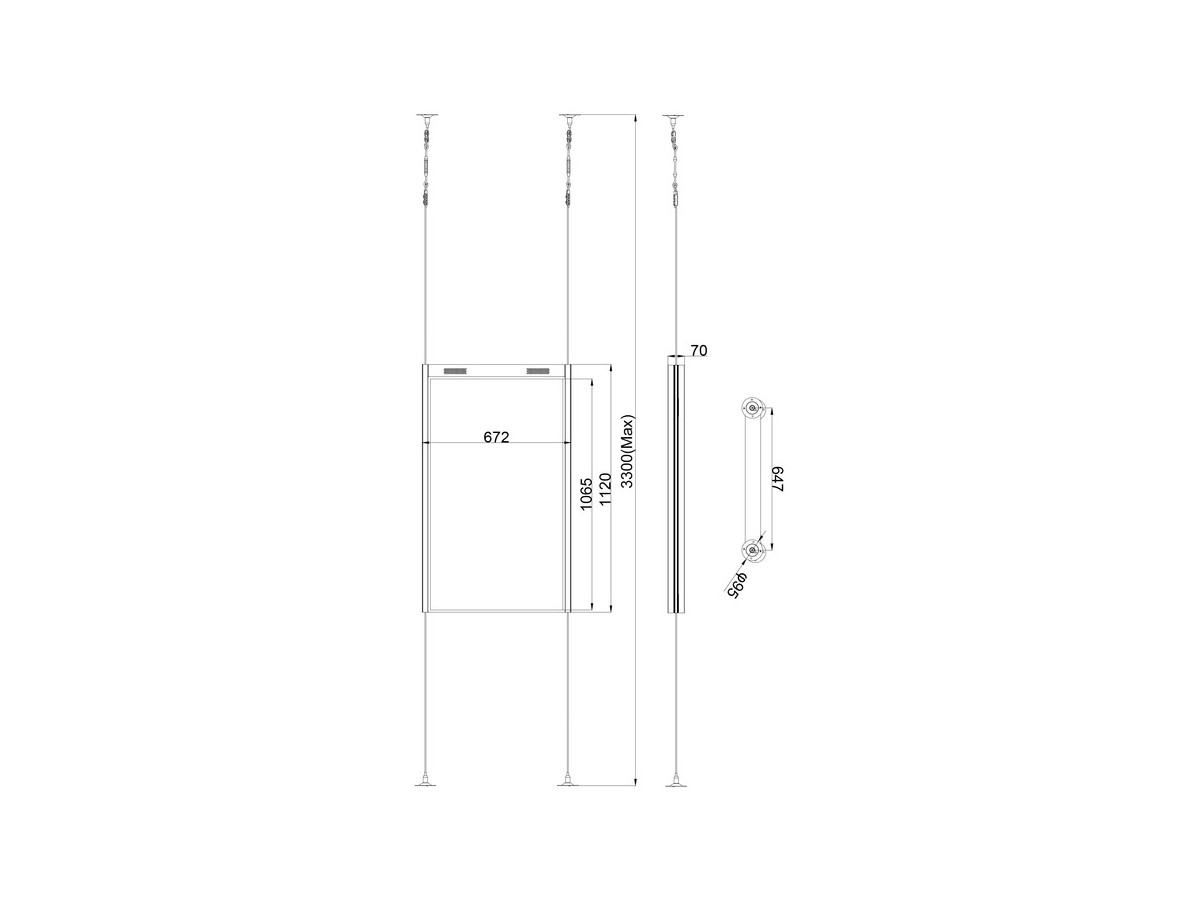 Product code:M Wiremount Pro OM46N-D - Floor to ceiling mount for LCD display, steel wire, 6m length, 1 screen, single side - screen size: LH46OMN-D - max load: 30kg - black