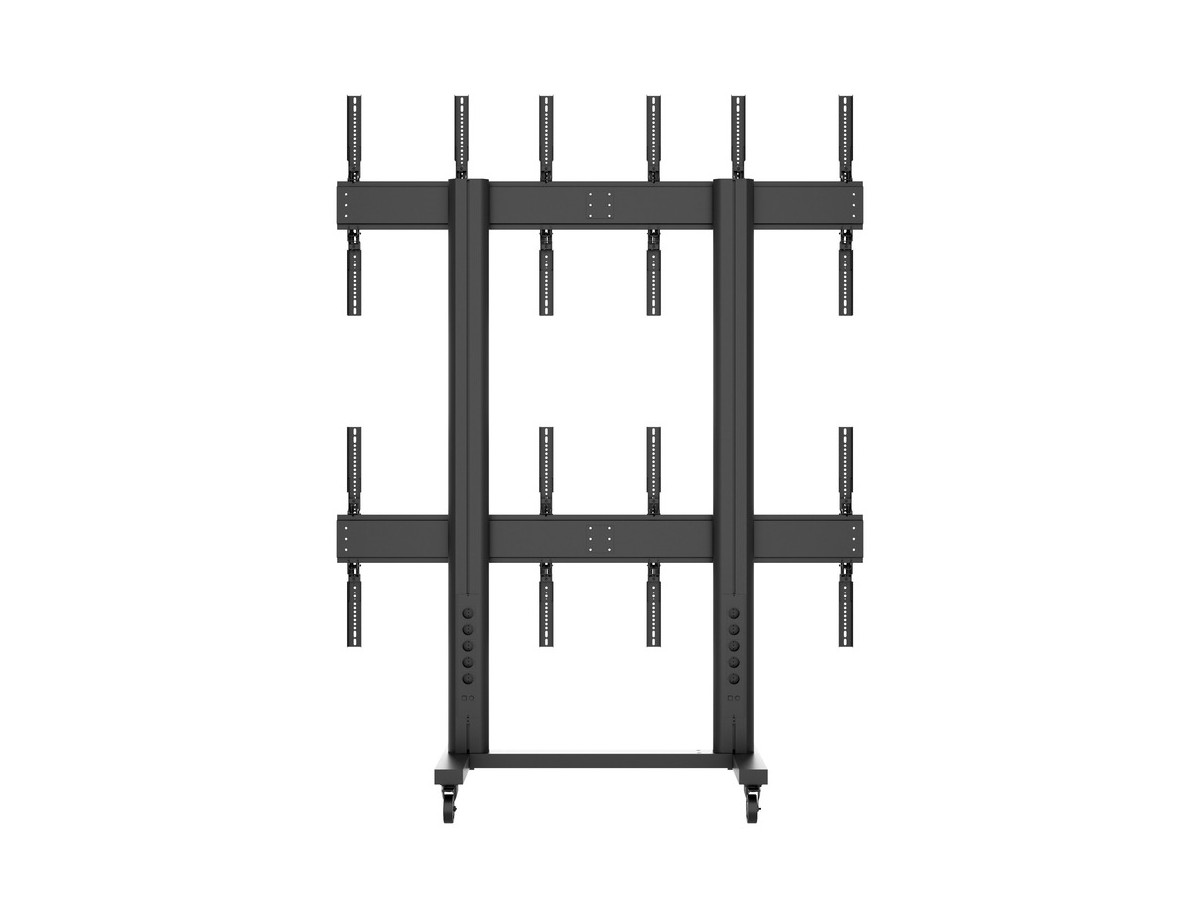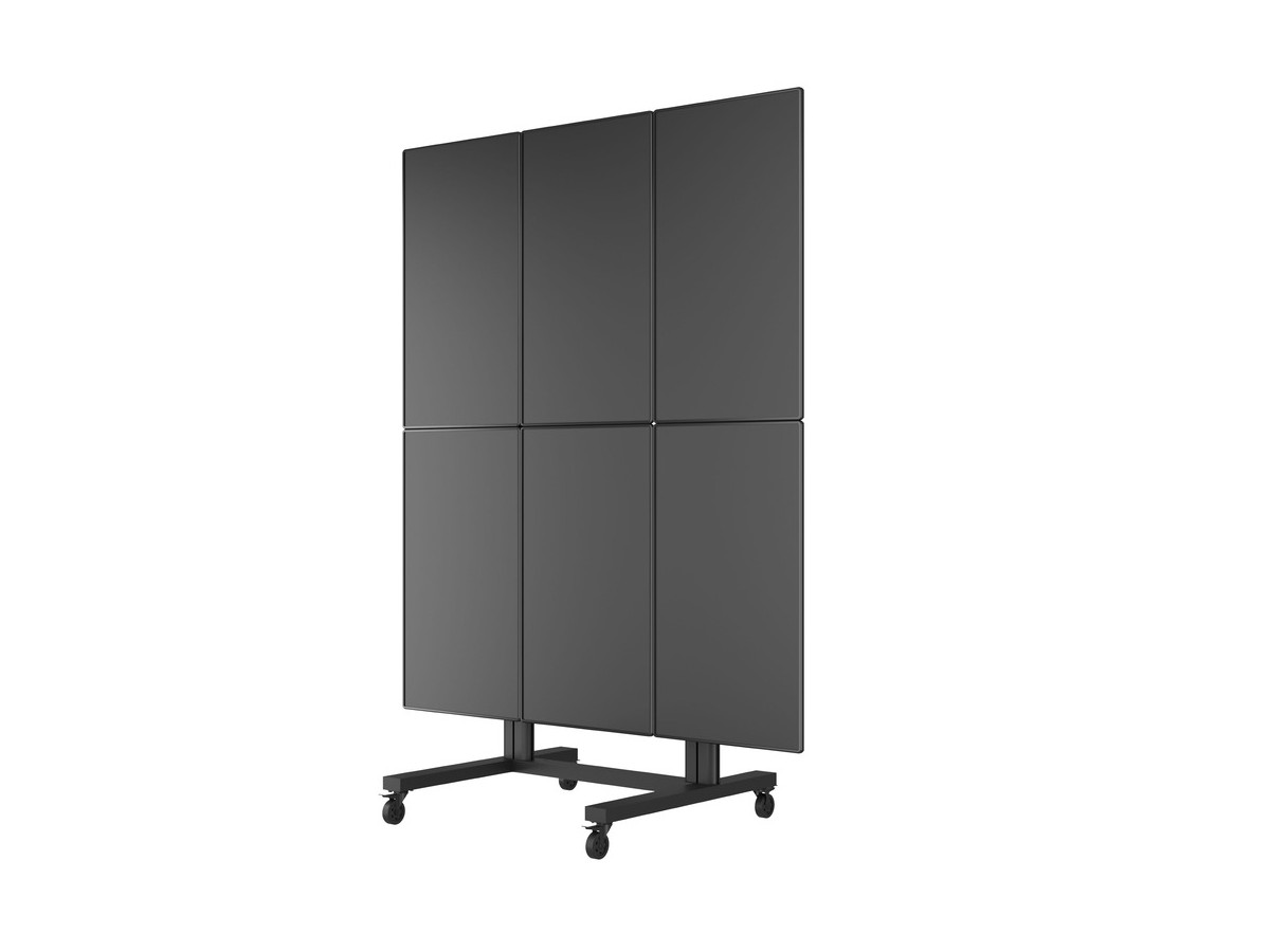 This 6 screen freestanding video wall cart makes it possible to construct video wall in prominent locations for temporary applications.