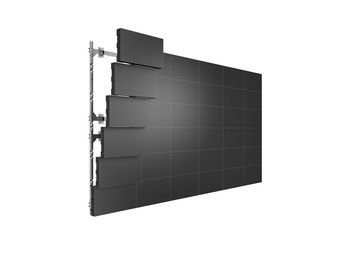 Introducing The M LED Video Wall Mounting System for LG from Multibrackets is designed to support creative LED video wall configurations. Simply stack LED displays to create one continuous video wall. Multibrackets modular design attaches to the top, bottom, and sides of other mounts to support endless design configurations. The M LED Video Wall Mounting System feature offset mounting slots to protect LED displays from damaging friction during installation. Once displays are in place, Multibrackets unique and variable X,Y, and Z-axis adjustment possibilities allows for a perfect positioning and alignment for a flawless LED videowall.