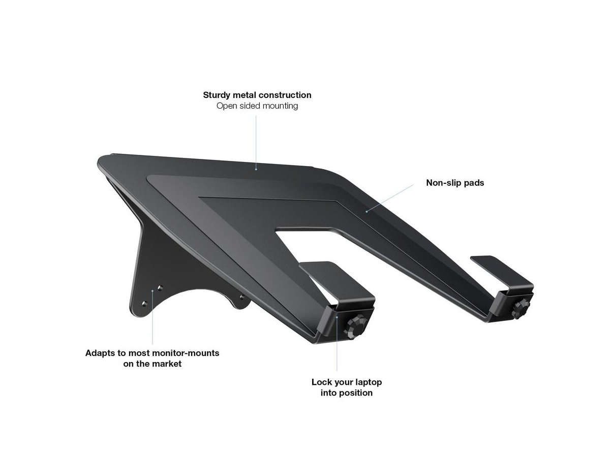 This unique holder consists of a VESA based centerpiece and its connected holding arms that gently grab your laptop. The M Laptop Holder Gas Lift Arm is VESA compatible, so it can be mounted onto almost any VESA specified wallmount, arm or desktopmount. However this laptop holder is designed to work with M VESA Gas Lift Arm.